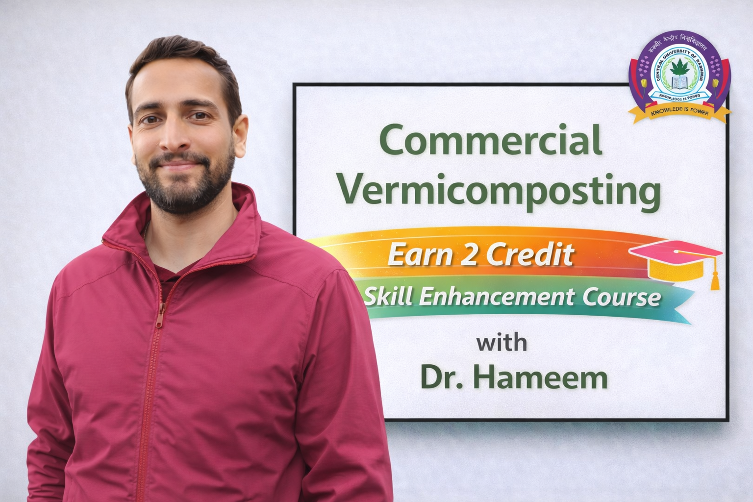 This Course comprises of 02 credits spanning over to 10 different modules-starting from basics of Vermicomposting and Vermiculture to Harvesting of Vermicompost for marketing. Each module, is covered in a very detailed manner, fulfilling all objectives specific to that module. This Skill Enhancement Course on Commercial Vermicomposting enables the learners to use Earthworms to turn organic waste (food scraps, manure, etc.)into nutrient rich soil conditioner, the vermicompost and liquid fertilizer, the Vermiwash.It covers the biology of earthworm, various techniques involved from production to marketing of Vermicompost for self-employment.